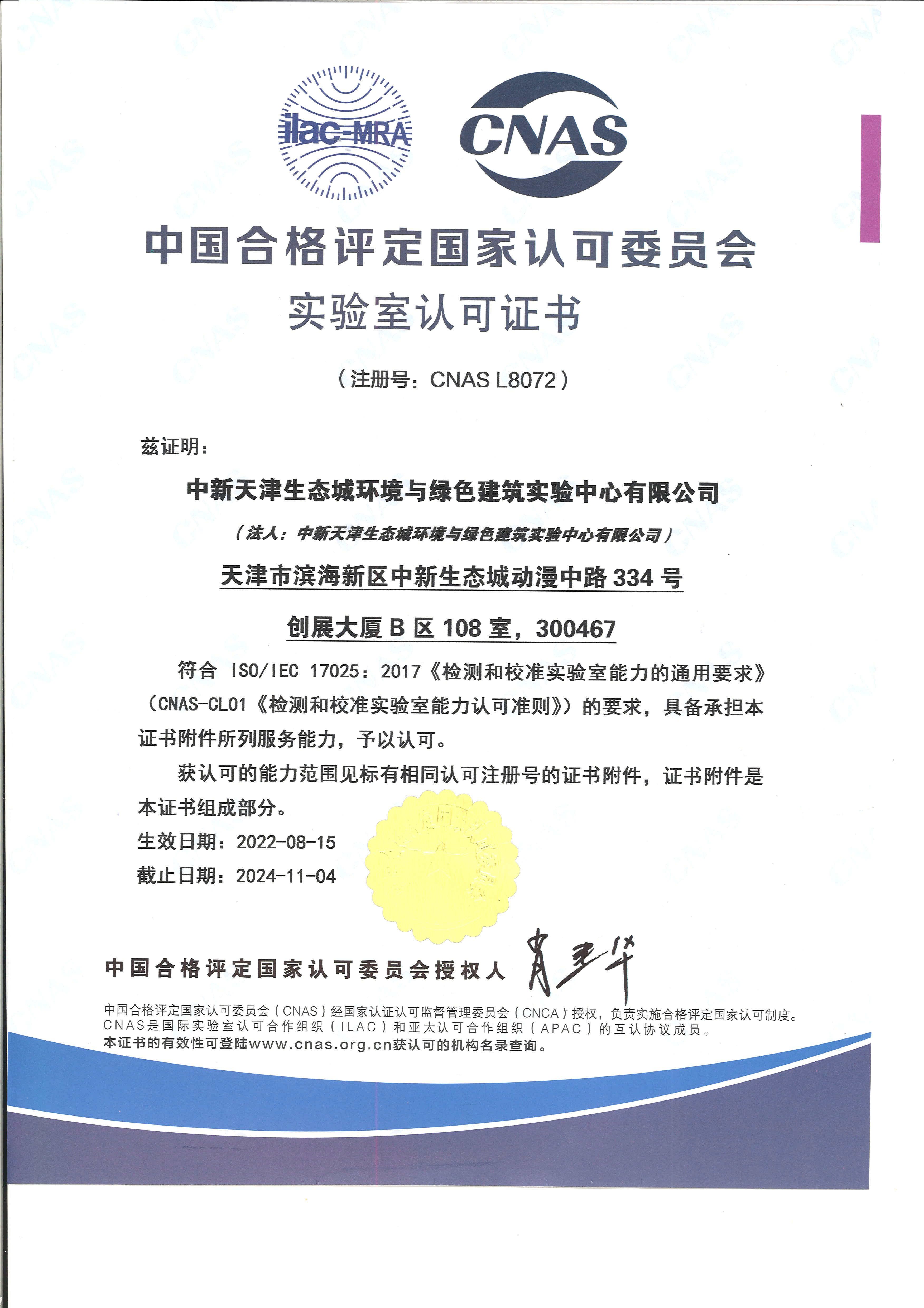 中新天津生態(tài)城環(huán)境與綠色建筑實驗中心有限公司