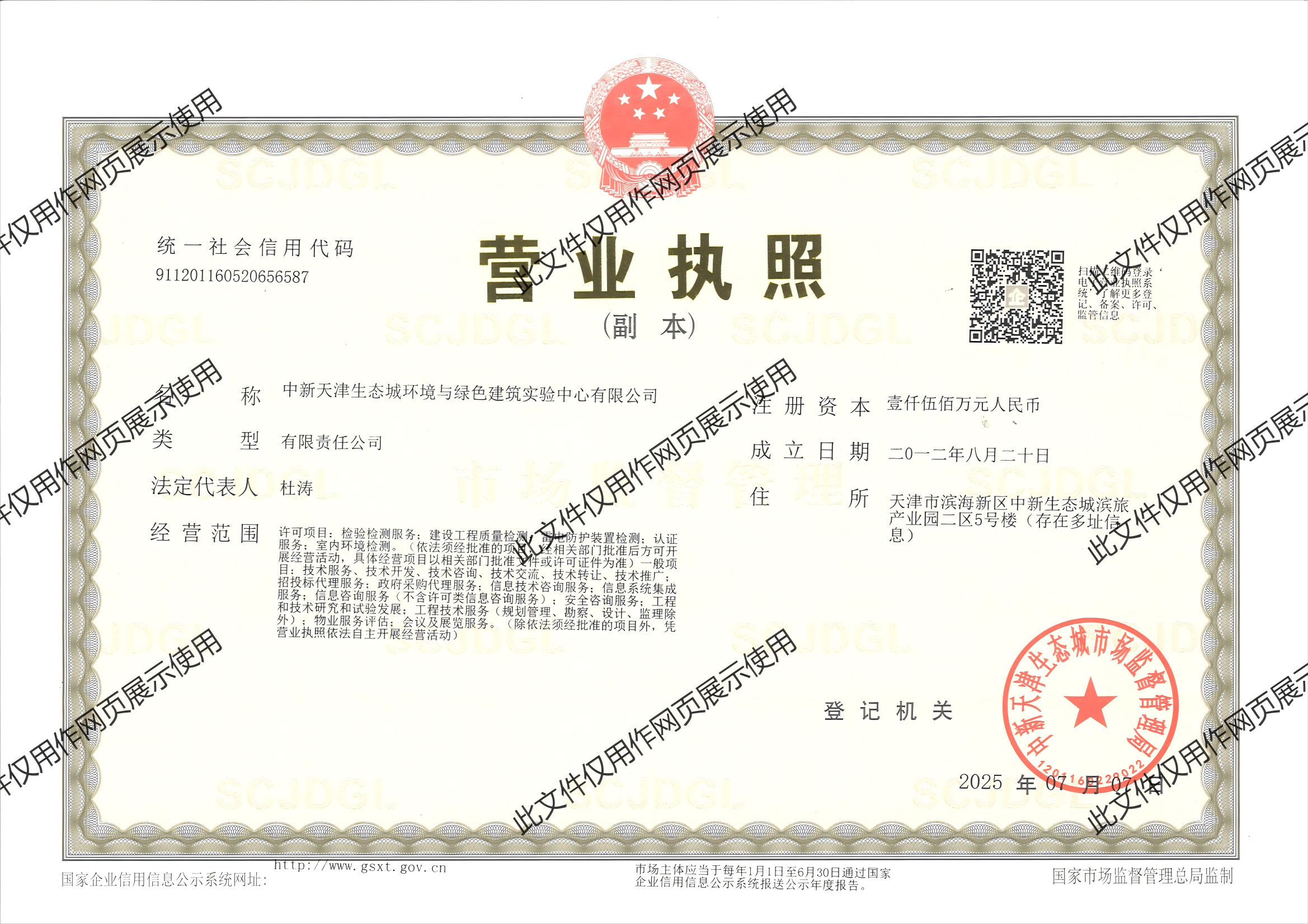 中新天津生態(tài)城環(huán)境與綠色建筑實驗中心有限公司是天津生態(tài)城綠色建筑研究院有限公司與天津住宅科學研究院有限公司共同出資組建,注冊資金為1500萬元。